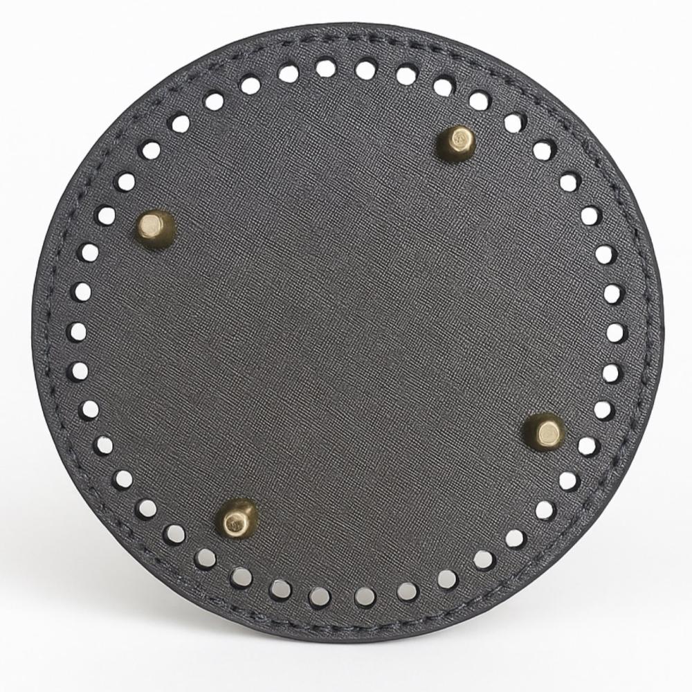 قاعدة شنطة لون اسود فضي جلد دائرية ١٥ سم